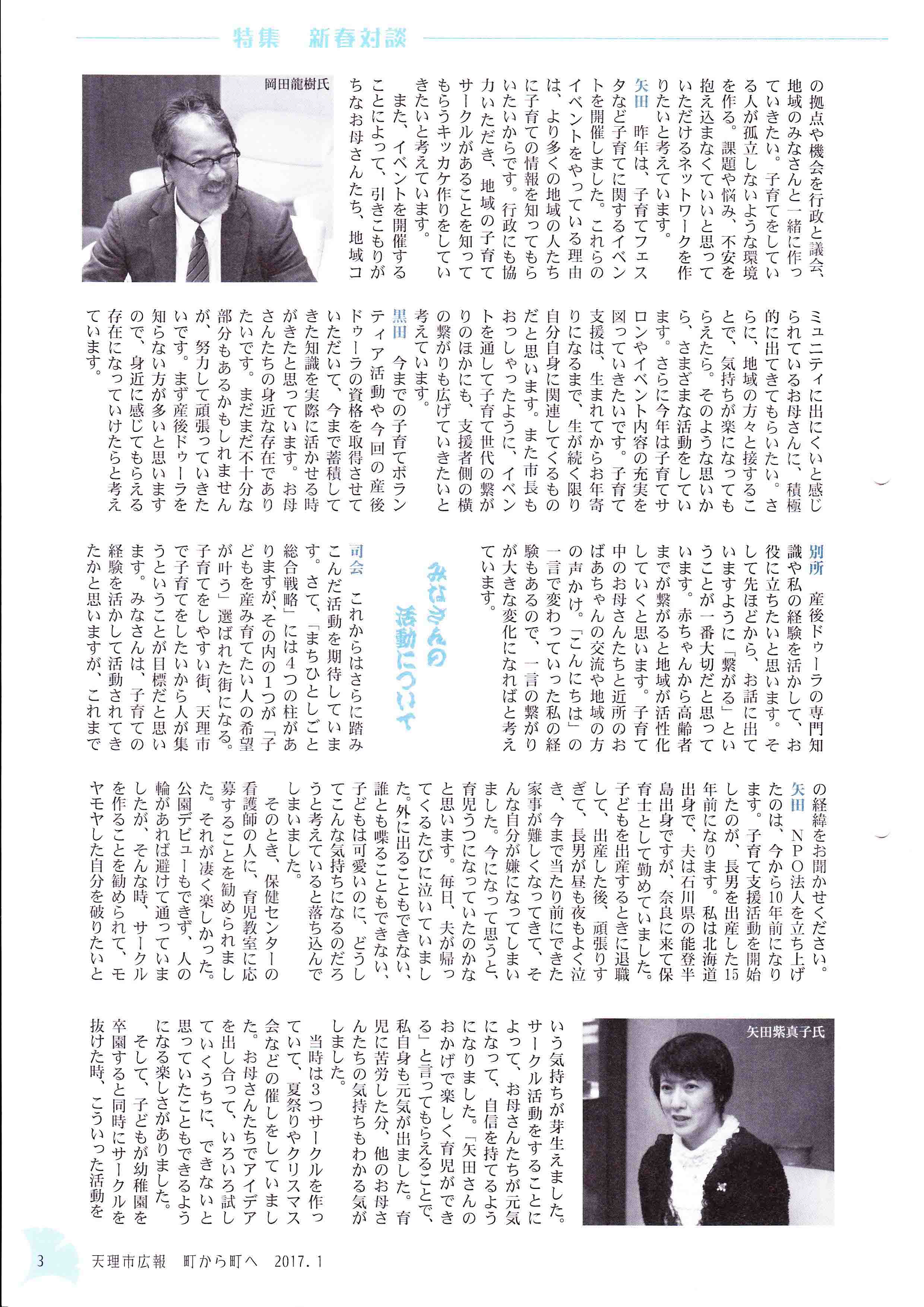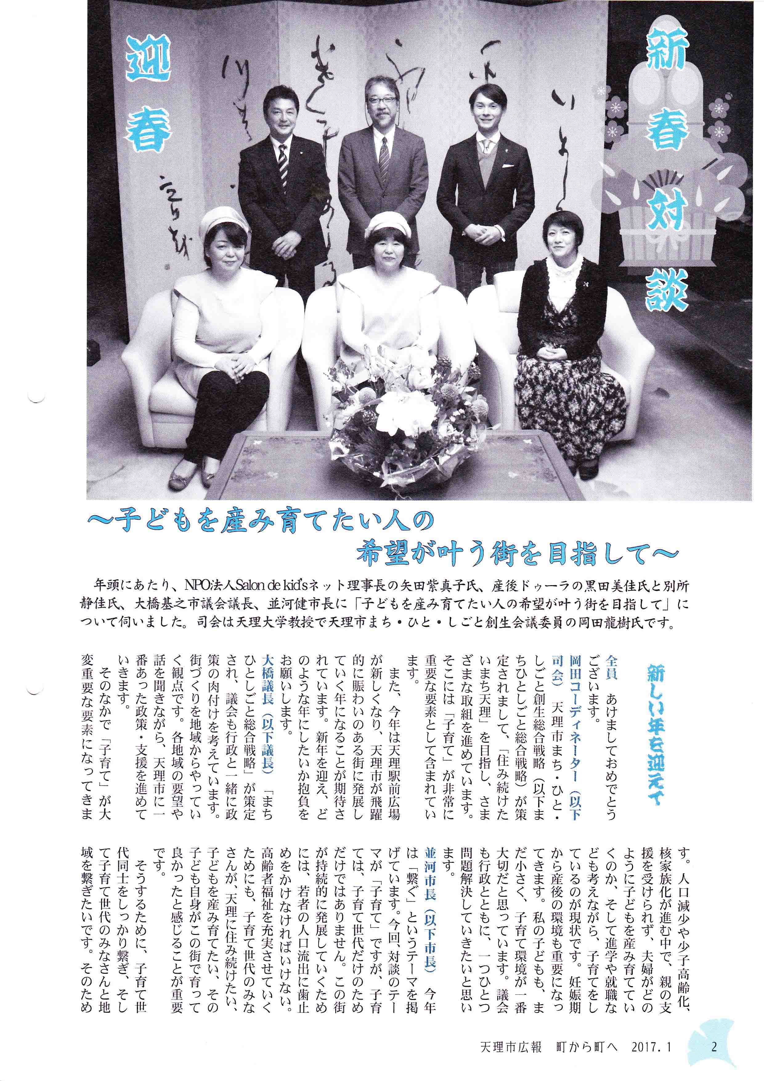 天理市長との新春対談、天理市広報誌、町から町へに掲載されました